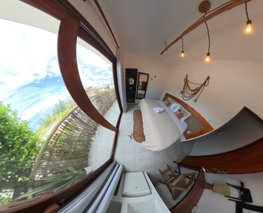 A Suíte Movimento combina conforto e simplicidade em um ambiente aconchegante à beira-mar.